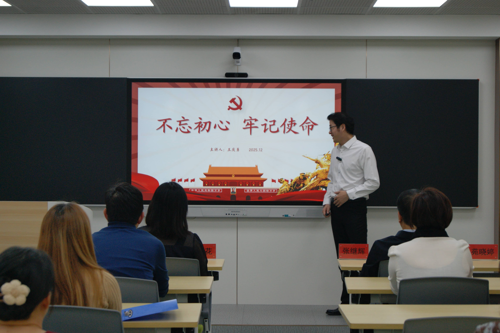王庆勇教师以“不忘初心、牢记使命”为主题,系统阐述了中国共产党的初心与使命,强调要用党的创新理论武装头脑,增强为实现新时代党的历史使命而不懈奋斗的思想自觉和行动自觉。他推荐了《榜样的力量》《国之脊梁》两本书,鼓励青年教师坚定理想信念,传承中华优秀传统文化,勇于创新,以革命先辈为楷模,努力成为有担当的新时代青年。